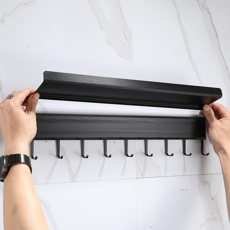 The Modern Black Wall Mounted Kitchen Organizer Rack is a space-saving hanging storage solution with built-in hooks for utensils and a shelf for spice storage. Designed with a sleek black finish, it offers durable construction and easy wall mounting, making it ideal for organized and modern kitchens.